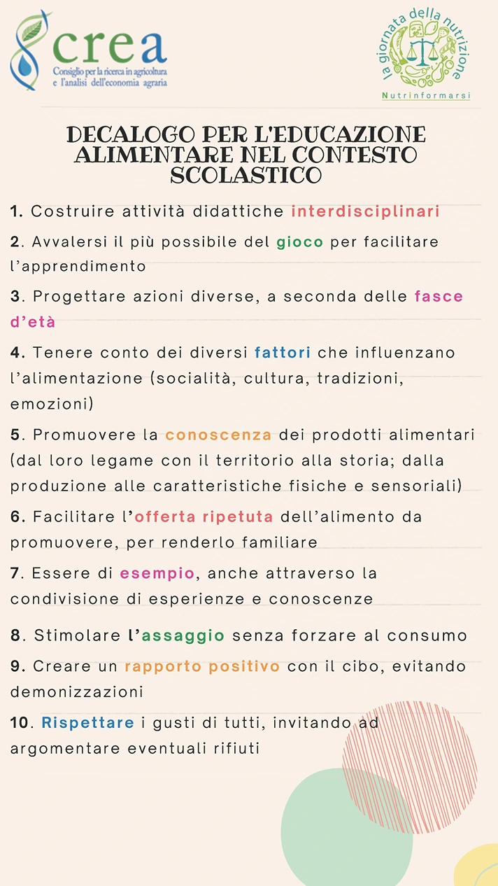 Il decalogo di educazione alimentare