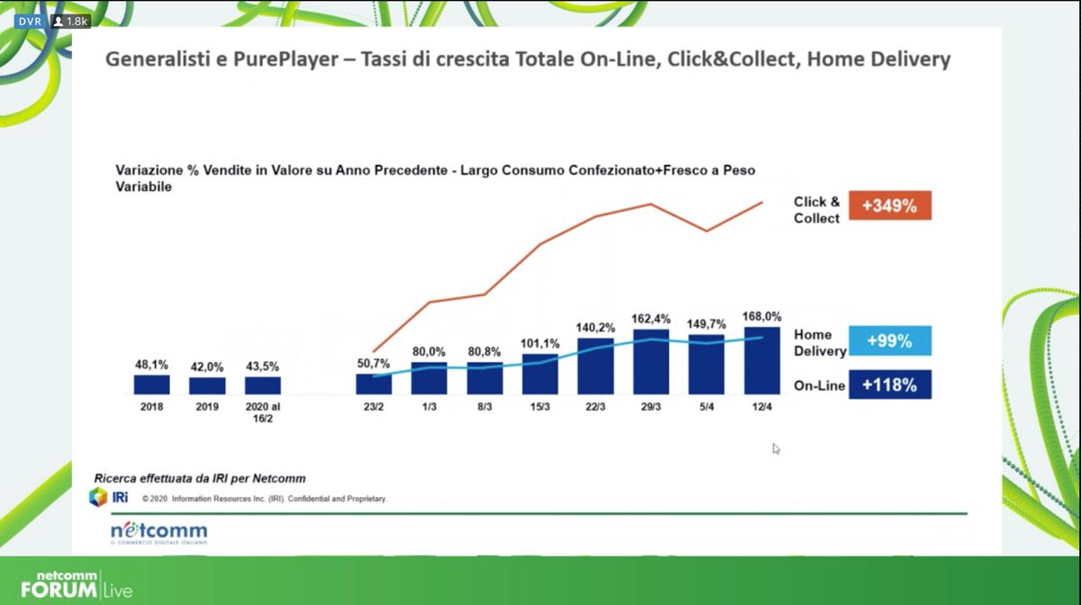 A fare il punto del situazione di un settore che da anni è in crescita, ma che negli ultimi mesi ha probabilmente subito un’accelerazione pari a quella di 10 anni, è stata NetComm, il Consorzio del commercio digitale italiano, che ieri, davanti a più di 2000 persone collegate on line – non senza svariati problemi di collegamento, la piattaforma è infatti stata messa a dura prova dal traffico presente – ha inaugurato la due giorni del suo Netcomm Forum Live con un'articolata agenda di workshop e seminari on line.