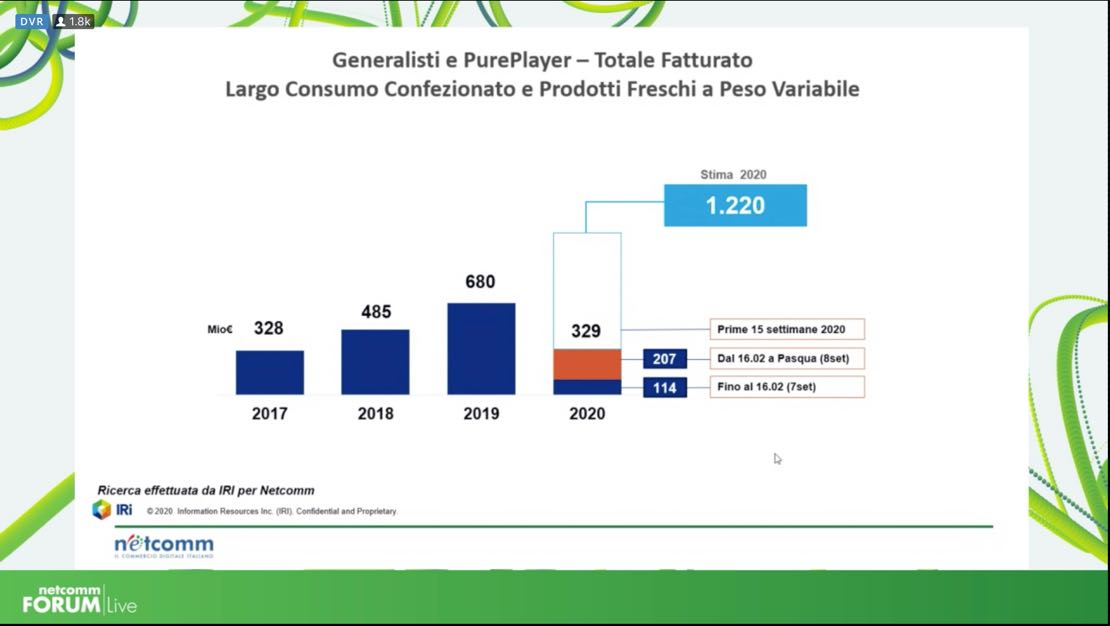 “L’alimentare on line era cresciuto in modo rilevante negli ultimi anni – ha continuato Liscia – anche se partendo da dati bassi, ma ora potrebbe registrare a fine anno un raddoppio delle vendite. Il food potrebbe acquisire una posizione rilevante all’interno del portafoglio dei prodotti e dei servizi venduti on line”.