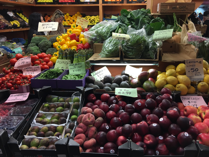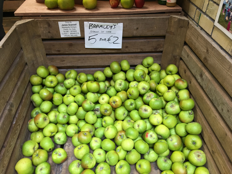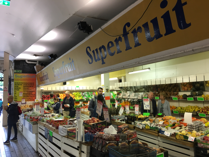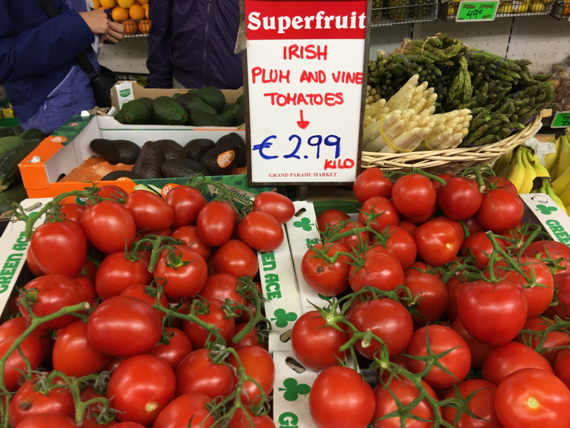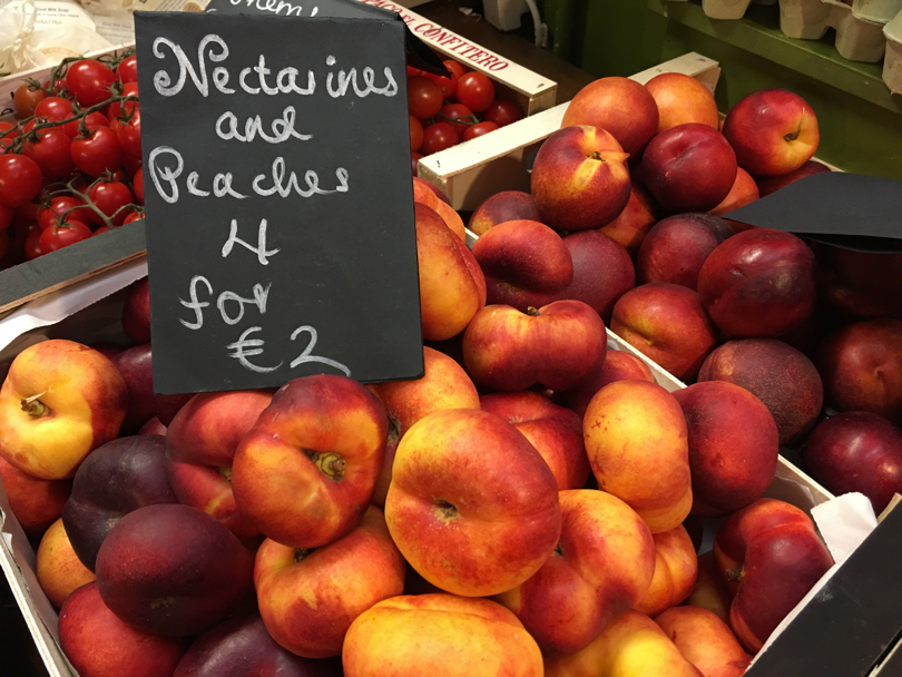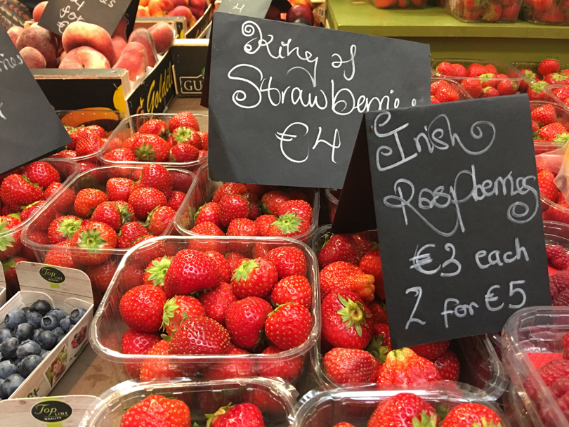 L’ortofrutta? Ovviamente non manca: frutta e verdura non sono probabilmente l’attrazione numero uno dell’English Market di Cork, ma certamente al suo interno spicca una bella offerta, variegata, colorata, ben esposta, ovviamente non solo a Km 0. I berries, come da tradizione anglosassone, dominano e spuntano sugli scaffali di un un po’ tutti i negozi, ma non mancano neanche le mele locali, di varietà che ai consumatori italiani risultano pressoché ignote, ma dal gusto acido e succoso, croccanti al palato e vendute anche direttamente da produttori locali. Curiosità: se le pesche piatte anche qui non mancano, le nettarine piatte, invece, almeno per noi sono certamente una novità, qui invece presenti su più banchi.