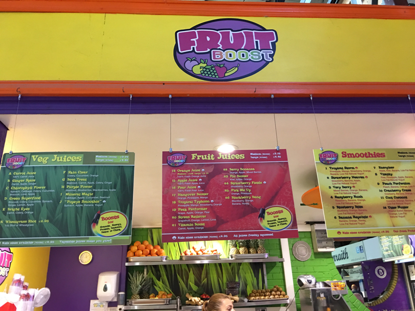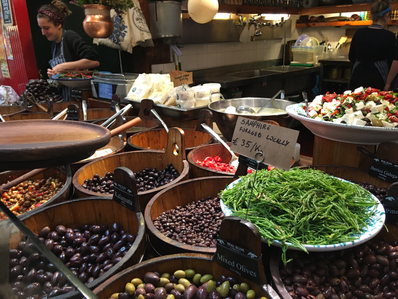 Tra faraoniche esposizioni di pesce e carne, due eccellenze locali molto ricercate, all’ora di pranzo c’è chi preferisce consumare uno spuntino in piedi o magari uno smoothies o un fruit juice nella parte centrale del mercato, oppure salire al piano superiore per consumare il proprio pasto seduto al bancone o ai tavoli dove vengono servite molte delle materie prime che si trovano in basso. Ed è forse proprio qui che si respira l’atmosfera più originale, assaporando le specialità locali e osservando dall’alto il brulicare, sempre molto ordinato e mai gridato, che si consuma in basso. Da ragazzi con zaino in spalla a famiglie provenienti da qualsiasi parte del mondo, tutti si mettono ordinatamente in fila per un sandwich di pollo, del merluzzo o, per i più golosi e goduriosi, un piatto di ostriche, magari accompagnate da una buona birra Stout locale o da un semplice bicchiere d'acqua (gratuito).