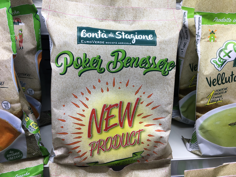 La terza novità, infine – anche questa come le precedenti sotto il brand cappello “Bontà di Stagione” – riguarda delle nuove referenze all’interno della linea di zuppe e vellutate monoporzione: la vellutata di asparagi e altre due nuove referenze che andranno a far parte di una linea benessere ad hoc, il “Tris Benessere” (carota gialla, finocchio e zenzero) e il “Poker Benessere” (carota gialla, arancione, nera e zenzero).