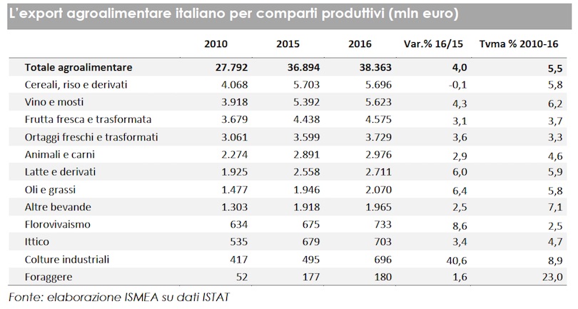 L'ortofrutta, sia fresca che trasformata, si conferma la prima voce dell'export agroalimentare italiano, con una crescita sopra il 3% anche nel 2016. È quanto emerge dall'ultimo rapporto elaborato da Ismea su dati Istat dal titolo “La bilancia commerciale dell’agroalimentare italiano nel 2016“.