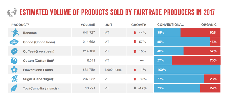 L'annuale report dal titolo Working together for fair and sustainable trade sottolinea come il Premio Fairtrade sia aumentato quest'anno del 19% e come le vendite complessive siano cresciute invece dell'8% sempre a livello globale.