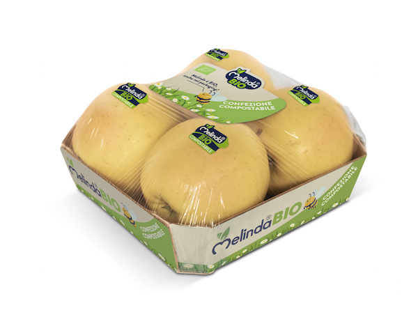 Oltre ai bio-distretti, Melinda ha messo a punto anche una sala di confezionamento dedicata alle mele biologiche, nonché un packaging totalmente biodegradabile: “Si tratta di un vassoio in carta erba, ricoperto con film in bioplastica Mater-Bi di Novamont  e anche i bollini sono biodegradabili – spiega Fedrizzi – Per ora questo pack è dedicato solo alle mele bio, in futuro lo proporremo anche per le nostre mele provenienti da agricoltura integrata”.