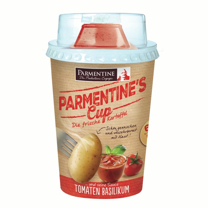 Parmentine´s Cup – Parmentine, Francia. Recipienti da 250 grammi di patate pronte per la cottura a micro-onde. Ne esistono in due varianti: al sugo pomodoro-basilico oppure al formaggio bianco con erba cipollina.