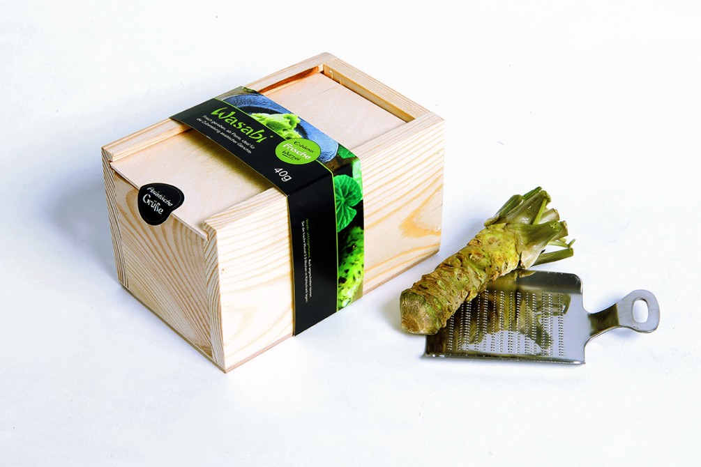 “Wasabi Giftbox“, East4Fresh – Color2Food, Paesi Bassi. Una confezione regalo in legno non trattato, con rizomi di wasabi fresco e una grattugia per wasabi. Un’esperienza culinaria, senza additivi, per la tavolo da pranzo.