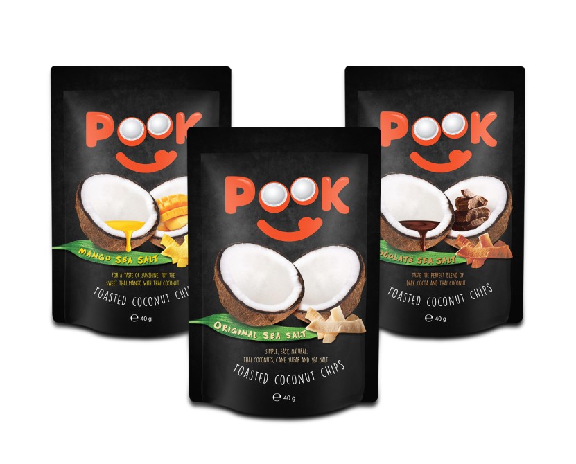 “Pook Coconut Chips“, PookSpaFoods, Germania. Crisps di cocco fresco, croccante, senza olio e grassi, con un gusto particolare, nelle varianti con sale marino originale, sale marino al mango e sale marino al cioccolato.