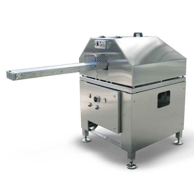 “Malver“, Turatti, Italia. Un sistema elettromeccanico per l'esatto peeling automatico di tutti i tipi di mango snocciolato e dimezzato con una capacità media di circa 48 pezzi al minuto.