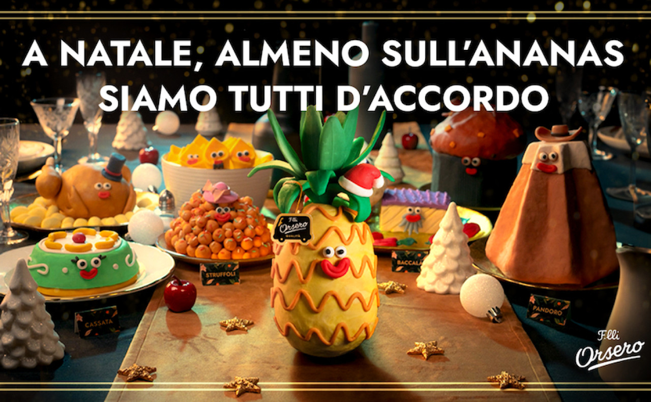 Il video, realizzato in stop motion, racconta con un linguaggio fresco ed ironico la tipica tavola delle feste fatta dei tanti piatti della tradizione delle singole regioni italiane, ponendo l’attenzione su ciò che, alla fine, mette tutti d’accordo: al di là di cosa verrà servito a tavola durante il Pranzo di Natale; alla fine, si concluderà in bellezza con l’ananas, quello Extra Premium F.lli Orsero.