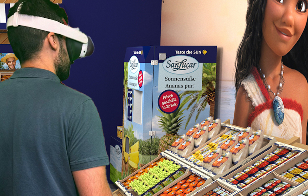 Con gli occhiali si ha la sensazione di essere direttamente nel reparto frutta e verdura. Si possono persino toccare i prodotti e osservarli da tutti i lati. SanLucar, come marchio forte del settore agroalimentare con prodotti di prima qualità, trasforma il reparto frutta e verdura dei supermercati in un centro di attrazione, oltre a un punto di chiara differenziazione dalla concorrenza.