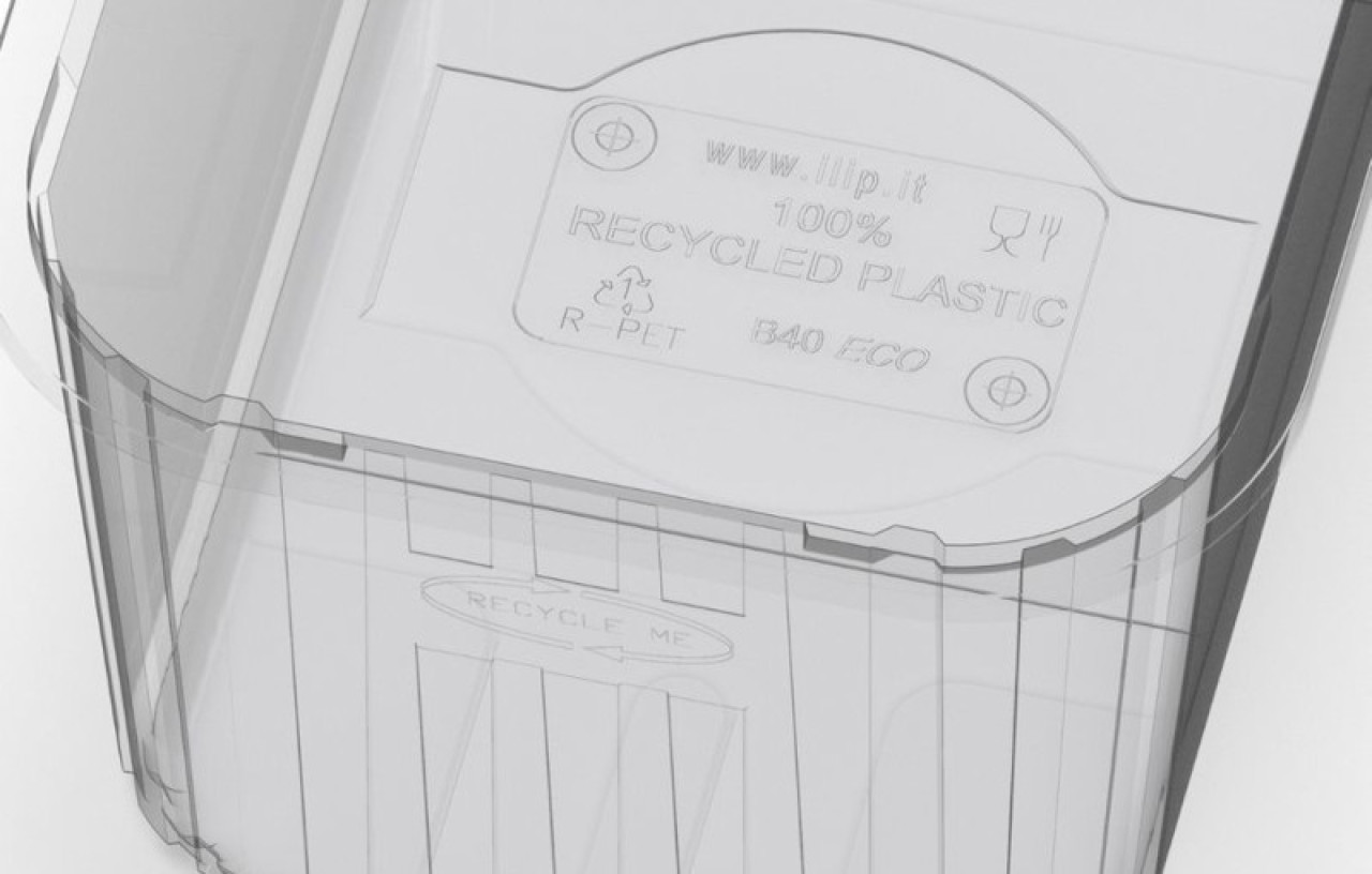 L'offerta di Ilip si arricchisce anche di alcune importanti novità che verranno presentate in fiera: il cestino B40 per fragole e frutti delicati, realizzato in r-Pet, che si contraddistingue per la sostituzione del pad con microbolle adagiato sul fondo della confezione, con un pad assorbente in carta. Questo inserimento consente ai confezionatori di ridurre la quantità di plastica impiegata nel packaging. Dopo l'uso, il cestino e il pad possono essere facilmente separati e smaltiti nella raccolta differenziata rispettivamente della carta e della plastica.