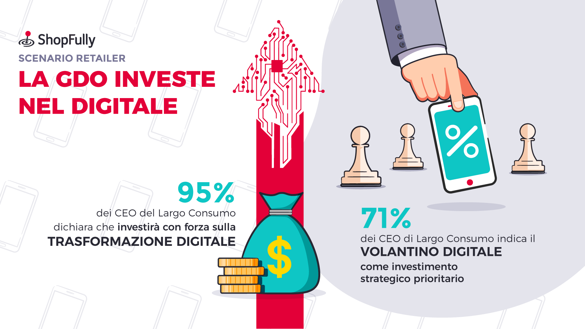 La digital transformation è il presente, non più il futuro del retail. Lo confermano i dati Nielsen presentati a una platea di esperti del settore durante l’evento di ShopFully “Il digitale al servizio del Drive To Store: strategie e casi di successo”. Dall’intervista condotta da Nielsen fra i Ceo di industria e distribuzione emerge infatti che il 95% di loro intende investire con forza sulla trasformazione digitale.