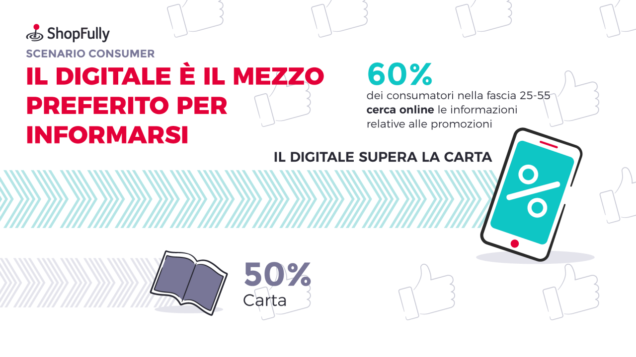 Questa scelta strategica è correlata al fatto che nel 2020 il digitale ha superato la carta come mezzo per informarsi e pianificare la spesa. Circa sei consumatori su dieci nella fascia 25-55 infatti dichiarano di cercare online le informazioni relative alle promozioni, percentuale in crescita rispetto allo scorso anno. In linea con questo trend, ShopFully ha registrato un forte incremento del tempo speso sui propri marketplace e un netto aumento (+44%) dei volantini sfogliati per ogni sessione. Questi risultati confermano il volantino digitale come il mezzo ideale per ingaggiare gli shopper.
