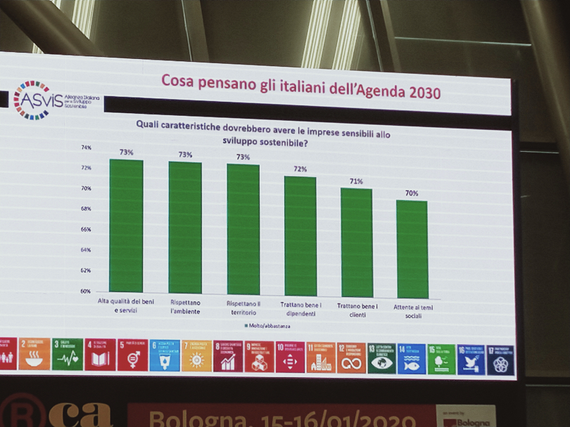 La sostenibilità è soprattutto ricerca di qualità, così la interpretano gli intervistati della ricerca presentata dal professor Enrico Giovannini (insegna economia e statistica all'Università di Tor Vergata a Roma ed è portavoce di ASviS) che alla domanda su “quali caratteristiche dovrebbero avere le imprese sensibili allo sviluppo sostenibile’” rispondono per il 73% “alta qualità dei beni e dei servizi”. La stessa percentuale toccano anche queste due risposte: “rispettano l’ambiente” e “rispettano il territorio”. Ma la sostenibilità non è solo colorata di verde ambiente, ma multidimensionale quindi per il 72% del campione per essere sostenibile un’impresa deve “trattare bene i dipendenti” ma anche “i clienti” (71% delle risposte) e deve essere “attenta ai temi sociali”. Il quadro è chiaro: va bene il biologico, va bene il km zero e la frutta e la verdura del territorio, ma la stessa cura deve prestata verso tutti gli attori della filiera.