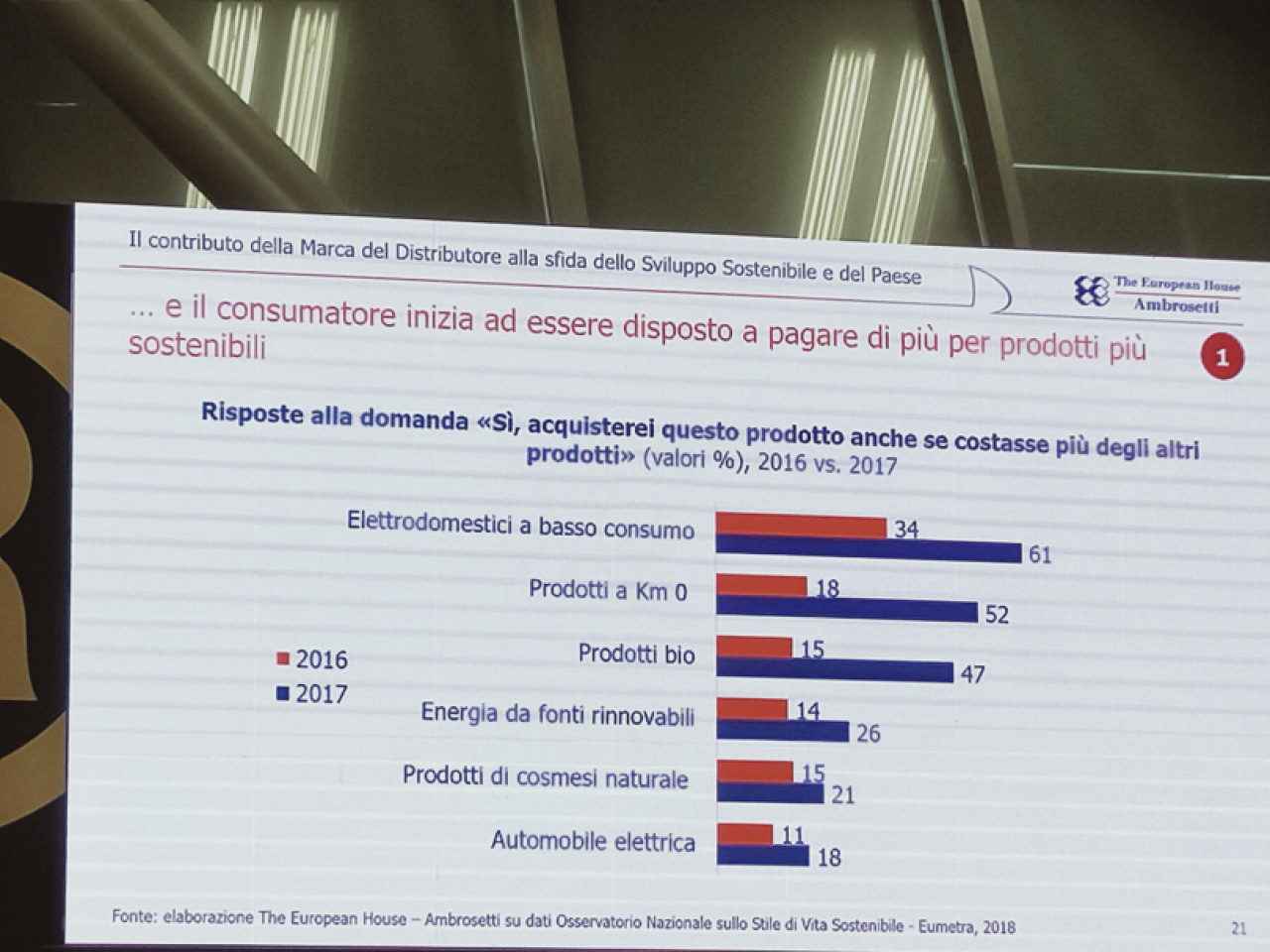 Sono segnali positivi, per chi crede nella sostenibilità, quelli che si leggono nel position paper “Il contributo della Marca del Distributore alla sfida dello Sviluppo Sostenibile e del Paese” realizzata da The European House Ambrosetti per ADM (Associazione Distribuzione Moderna) e presentata ieri da Valerio de Molli, Managing partner e Ceo di The European-House Ambrosetti, a Marca.