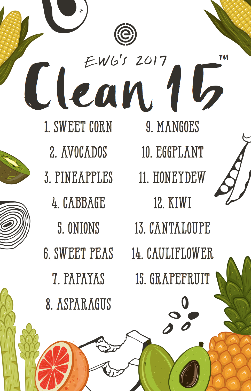 Insieme ai 12 più contaminati, l’EWG pubblica anche la “Clean Fifteen” (vedi qui), in questo caso la lista dei 15 prodotti prodotti ortofrutticoli più sicuri e “puliti” . In questo caso al primo posto troviamo il mais dolce, anche se l’associazione avverte che negli USA è ampiamente coltivato a partire da sementi OGM, idem per la papaya che si trova al settimo posto in questa particolare classifica, tanto da consigliare di acquistare biologico. Tra i meno contaminati, al secondo posto l’avocado, poi ananas, cavolo, cipolle, fagiolini surgelati, papaya, mango, melanzane, melone, kiwi, melone cantalupo, cavolfiore e pompelmo.