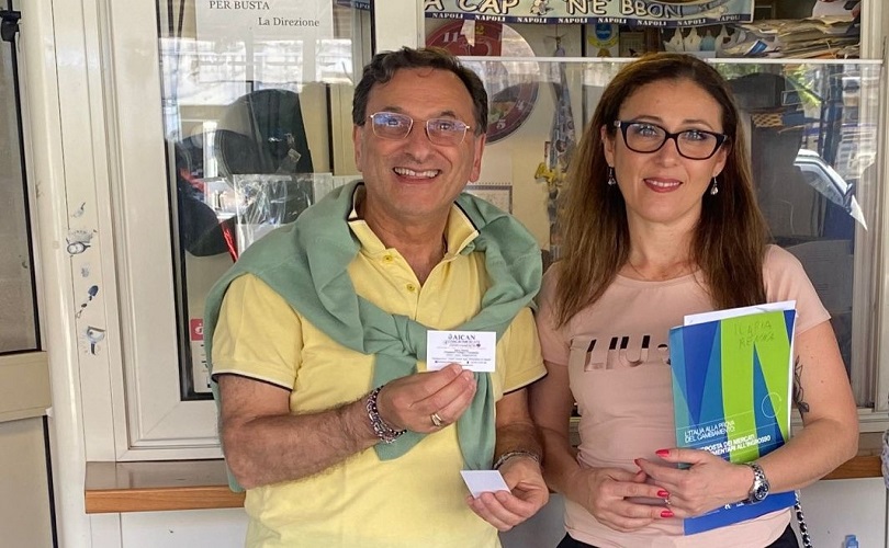 Ilaria Renna con Giuseppe Cuccaro presidente dell’associazione di categoria del mercato ortofrutticolo all’ingrosso di Piano di Sorrento.