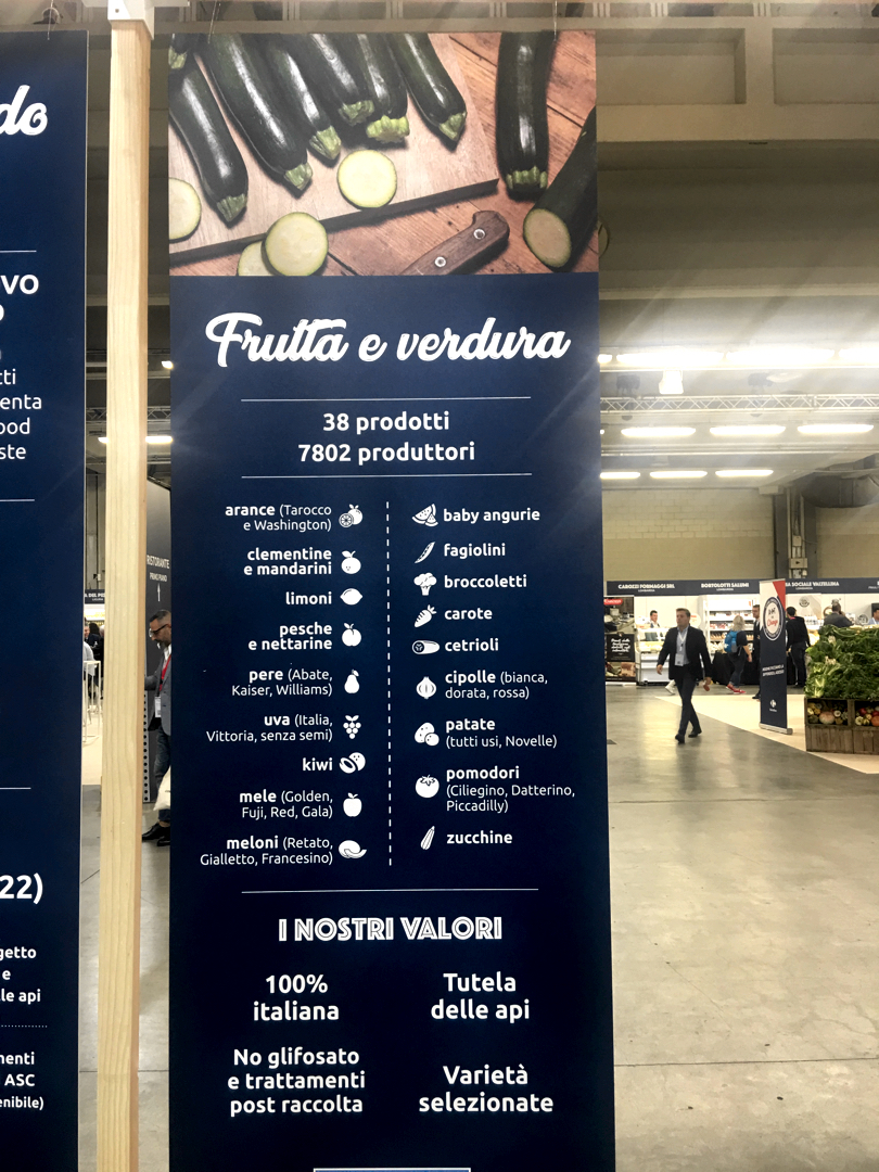 La tracciabilità e quindi i prodotti della Filiera Qualità sono uno dei primi principi guida che anima il reparto ortofrutta, che ogni anno si arricchisce di nuove filiere controllate in modo diretto dal campo allo scaffale. L'anno scorso qui al Salone milanese era stato non a caso presentato e illustrato il progetto che vedeva alcune filiere tracciate anche con la blockchain. «Nell'ortofrutta siamo partiti con arance e limoni e probabilmente entro l'anno la blockchain verrà integrata anche sula filiera dei pomodori» spiega Pescina. Un percorso, quest'ultimo, complesso, che procede di pari passo all'impegno da parte dell'azienda di inserire sempre più filiere in questo contesto. Uova e latte sono state presentate recentemente, altre che riguardano l'ortofrutta arriveranno anche in futuro.