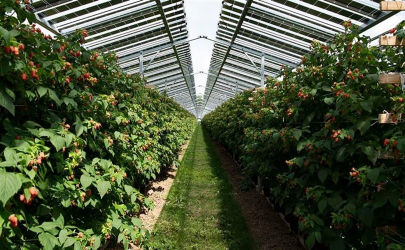 E l’agricoltura? Gli impianti sono installati su strutture che si elevano sopra le piante di lamponi. La produzione è salva. Anzi si produce in modo ottimale visto che il tetto protegge la piantagione dalle ondate di calore estreme o dalla grandine. Esteticamente, come si vede dalle foto, la struttura è più che brutta, ma non peggio di una serra tradizionale.