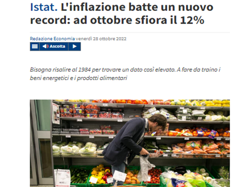 Si scrive e si parla di inflazione e spesso i prodotti più rappresentati sono frutta e verdura. Si sa e lo ha ripetuto ieri Davide Vernocchi, presidente di Apo Conerpo. Basta fare un tour sui maggiori e minori quotidiani e siti di informazione per la conferma. Il caro vita è identificato spesso con i prodotti della terra. Eppure il paniere è largo.