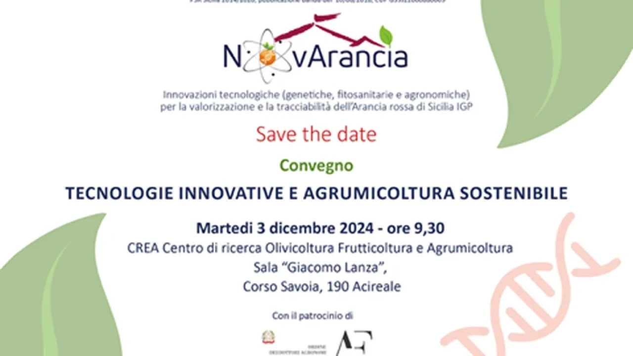 Si terrà martedì 3 dicembre ad Acireale (Catania) il convegno promosso da Novarancia per parlare di tecnologie innovative e agrumicoltura sostenibile.