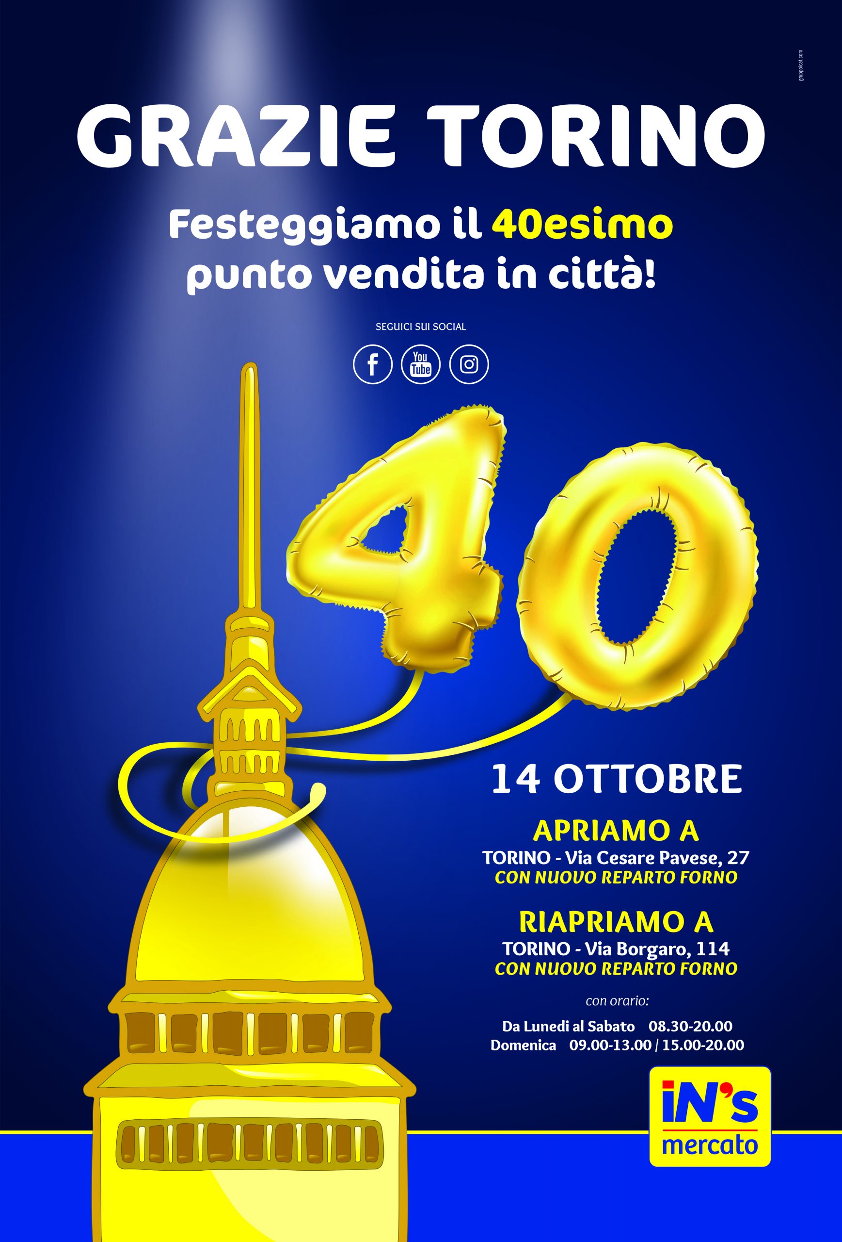 Nel mese di ottobre, In’s – l’insegna italiana discount, con sede a Venezia, presente in nove regioni con oltre 460 punti vendita – dedica una campagna di comunicazione “Torino 40” per celebrare il traguardo dei 40 punti di vendita nel capoluogo piemontese. Torino si conferma quindi come la città con più negozi dell’insegna discount italiana, seguita da Roma e da Genova. Per festeggiare questo importante traguardo è stata programmata una campagna marketing che coinvolgerà la città con diverse iniziative sia territoriali, sia media con una campagna su Radio, Affissione e Stampa. Per i clienti dei nuovi punti vendita è previsto un omaggio limited edition, una shopper illustrata che celebra i 40 punti di vendita in città.