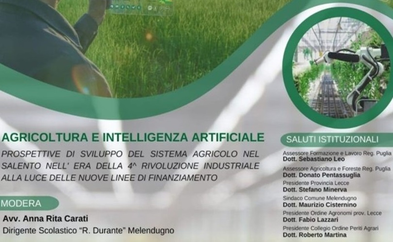 “Agricoltura e Intelligenza Artificiale” è il titolo del convegno che si terrà giovedì 14 dicembre alle 16.00 nella sala conferenze del comprensivo Rina Durante di Melendugno, in provincia di Lecce.