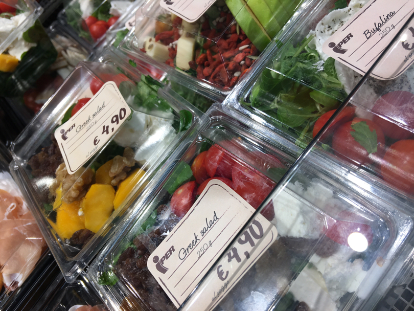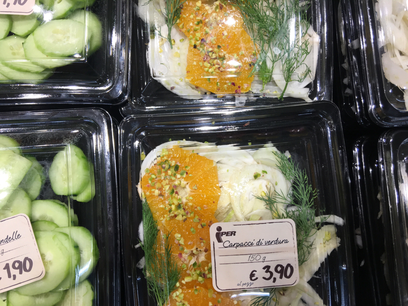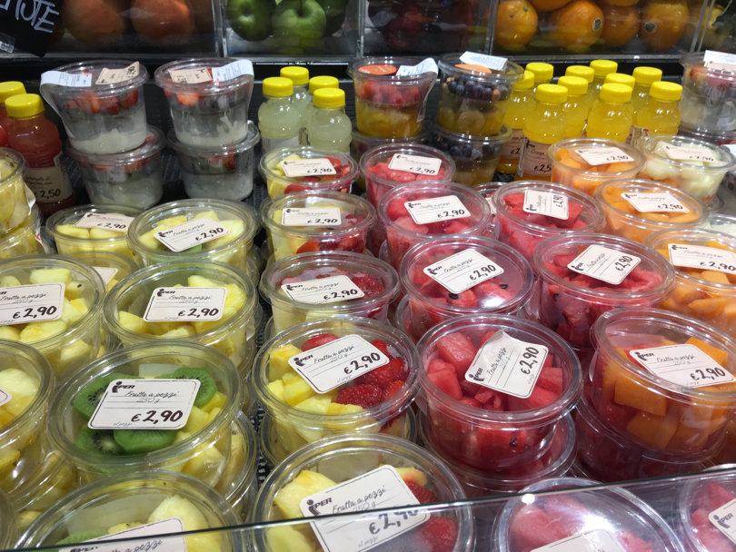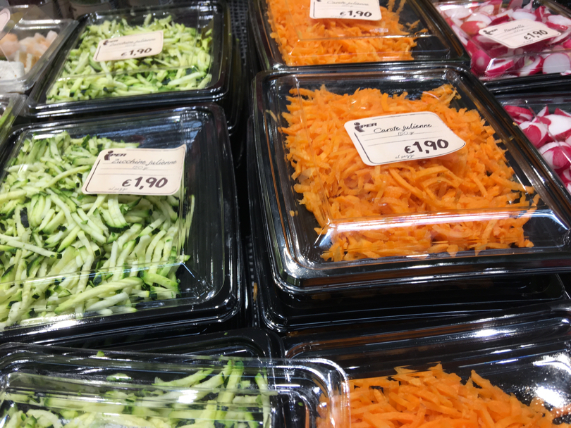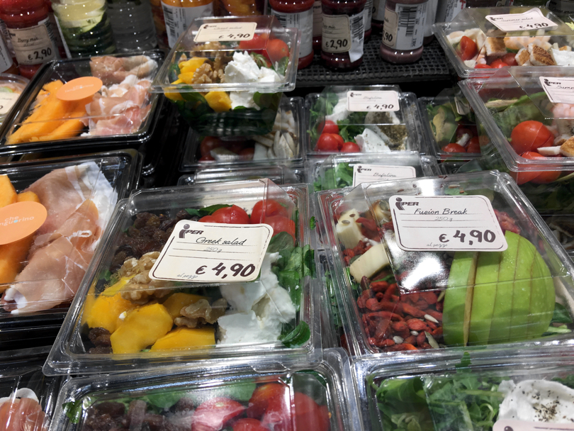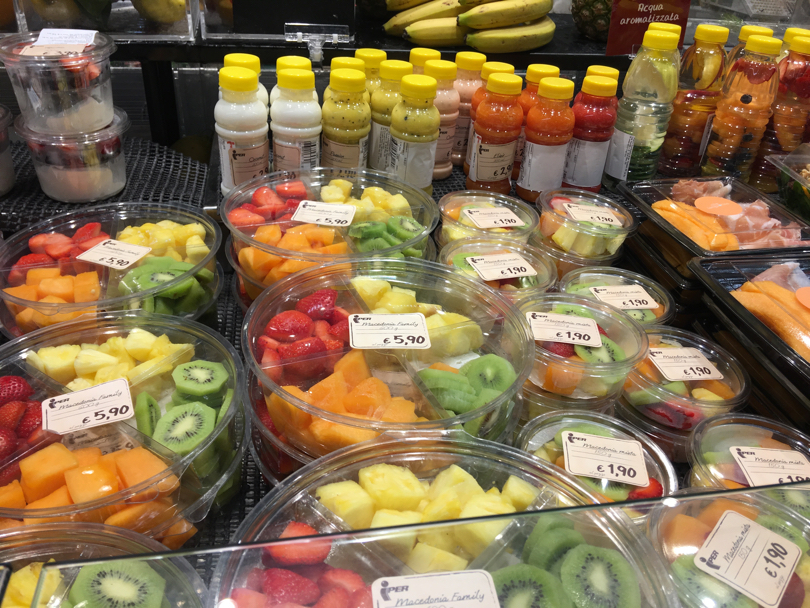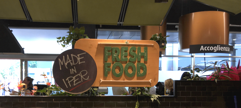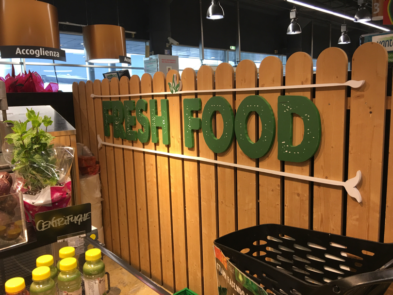 L’area del fresco, qui come in altri negozi con la stessa insegna, è da sempre uno dei punti dei forza, a partire dal reparto ortofrutta sempre ricco, ben assortito e in continuo cambiamento. Lo spazio denominato Fresh Food, che come giustamente afferma RetailWatch non deve essere scambiato per un juice bar, e in effetti non lo è, sebbene siano presenti centrifughe, frullati, spremute e persino bottigliette di acqua aromatizzata alla frutta, è un’area ben studiata con frutta e verdura take-away: frutta già tagliata confezionata in vaschette di grammatura differente, magari arricchita con yogurt, piatti pronti dove spiccano svariate tipologie di insalate preparate al momento, verdure già tagliate e via discorrendo.