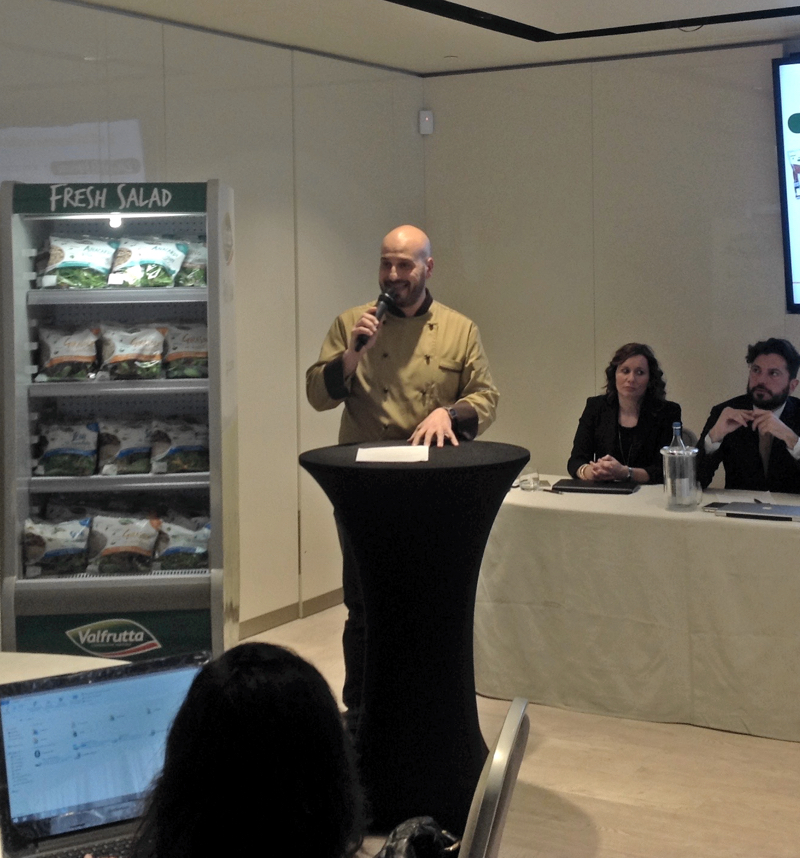 Federico Boscolo, responsabile della gestione dei clienti Gdo esteri per Cultiva, e che ha partecipato attivamente al lancio di questa nuova linea di insalate arricchite, ha sintetizzato le caratteristiche principali della nuova linea: la centralità dell’arricchitore nel nome delle referenze e ben in evidenza nelle confezioni – «già percepita dal consumatore come elemento salutare» – , la scientificità del valore nutrizionale di tutte le referenze, autorizzata dall’Efsa, la scelta della busta e non di altre confezioni, per esempio la vaschetta – “per fare innovazione all’interno di questa categoria e creare vendite incrementali” – , infine, ultimo ma non ultimo, il gusto. «I prodotti devono fare bene ma devono anche piacere». Da qui lo studio in cucina, con la consulenza dello chef Ferri, per riuscire a raggiungere il giusto equilibrio tra i tanti componenti che compongono i mix di tutte le 6 referenze.