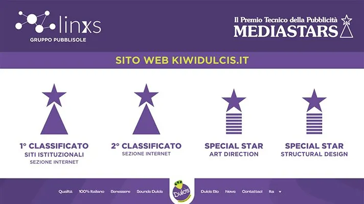 Il sito web kiwidulcis.it si è classificato al primo posto nella categoria siti istituzionali e al secondo posto come miglior sito in assoluto – premio Stella Mediastars. Il portale si è inoltre aggiudicato due premi special star nella sezione internet: art direction e structural design.