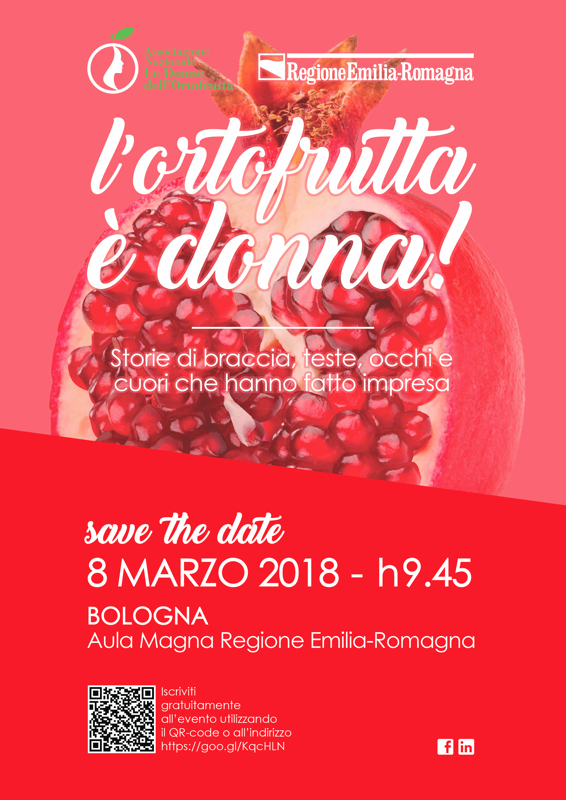 A Bologna, infatti, insieme alla Regione Emilia-Romagna, si terrà un convegno “per testimoniare e valorizzare il ruolo della donna nello sviluppo del settore ortofrutticolo, non solo regionale. Si parlerà di numeri (quante sono le donne occupate nell'ortofrutta in Italia?), ottenuti tramite un'indagine appositamente condotta. Si parlerà dell'evoluzione del lavoro delle donne in agricoltura e del legame profondo che le lega all'alimentazione. E parleranno alcune imprenditrici emiliano romagnole che, con capacità e tenacia, hanno contribuito a far eccellere le loro aziende”.