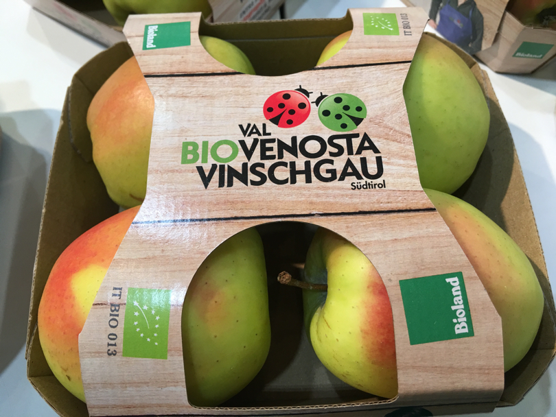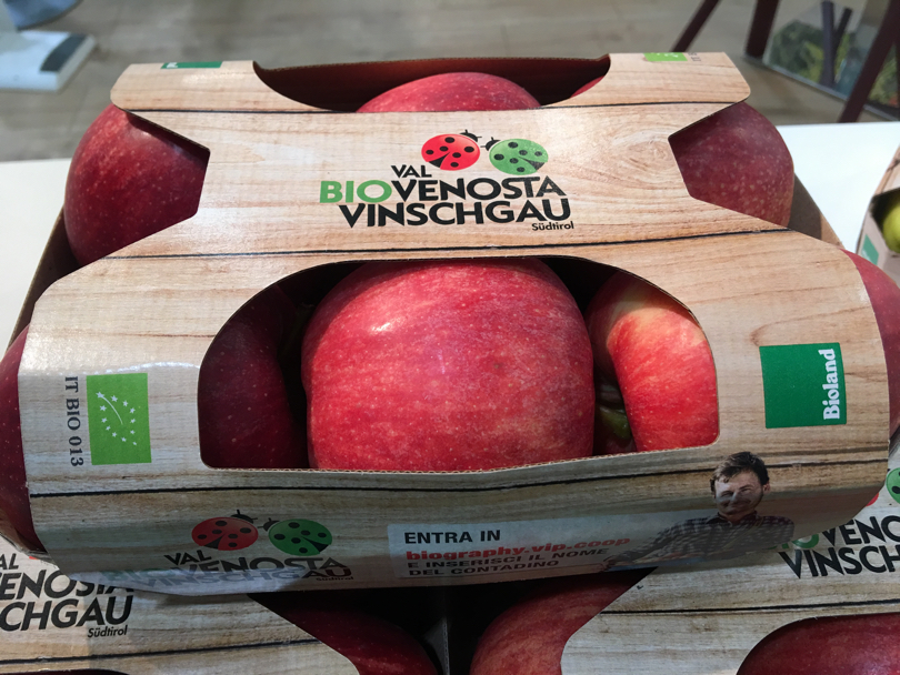 «Una decisione importante che dà il via ad una nuova era per Mela Val Venosta» ci spiega Gerhard Eberhöfer, responsabile vendite Bio Val Venosta che abbiamo incontrato all'ultima edizione del Sana di Bologna. «Nella cooperativa Juval abbiamo un nuovo magazzino automatico che contiene 18mila bins, pari a circa 4500 tonnellate, 12 linee di lavorazione e confezionamento, tra cui anche due linee Blitzmatic per la nuova confezione tutta in cartone che abbiamo introdotto recentemente».