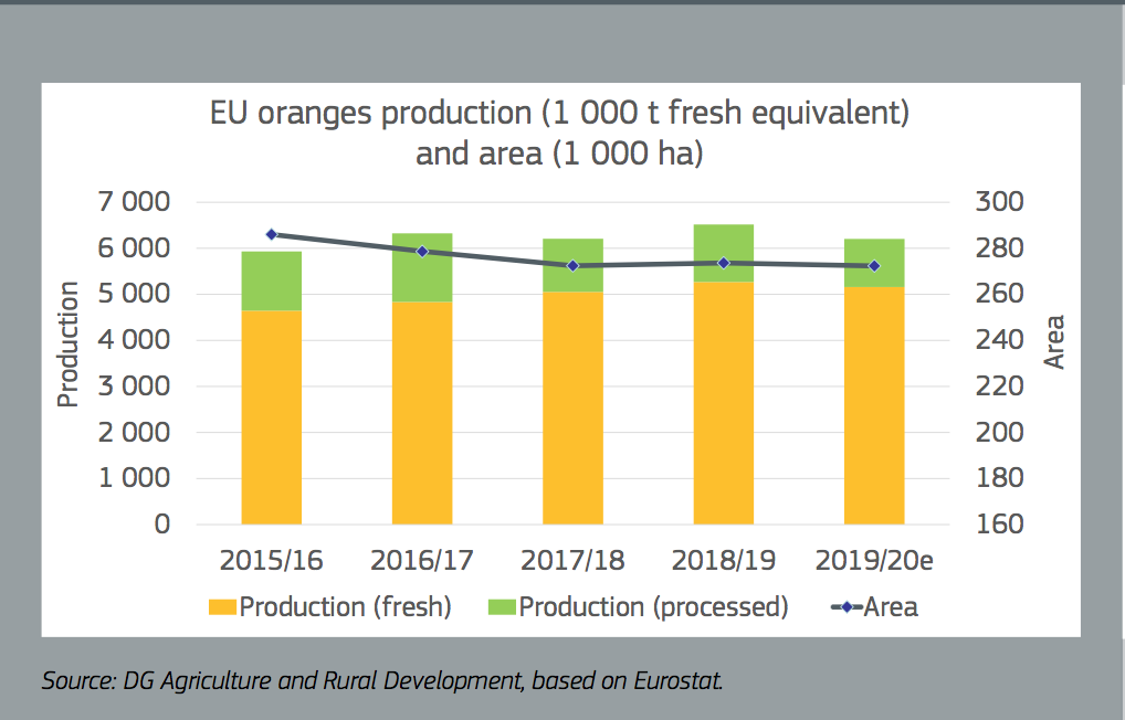 La pandemia avrà un impatto limitato sulle arance, poiché sta terminando ora il raccolto delle varietà tardive. Nel merito, si prevede che la produzione di arance per la campagna in corso raggiungerà i 6,2 milioni di tonnellate, il che significa il 5% in meno rispetto all'anno precedente. Poiché ritenuto un alimento sano, la domanda di arance cresce, sia in termini di arance fresche, sia per quanto riguarda i succhi, il che ha generato due effetti: l'aumento dei prezzi sia a livello globale, sia a livello europeo e l'aumento delle vendite al dettaglio. Quest'ultimo dovrebbe essere maggiore del calo dei consumi del canale Horeca.
