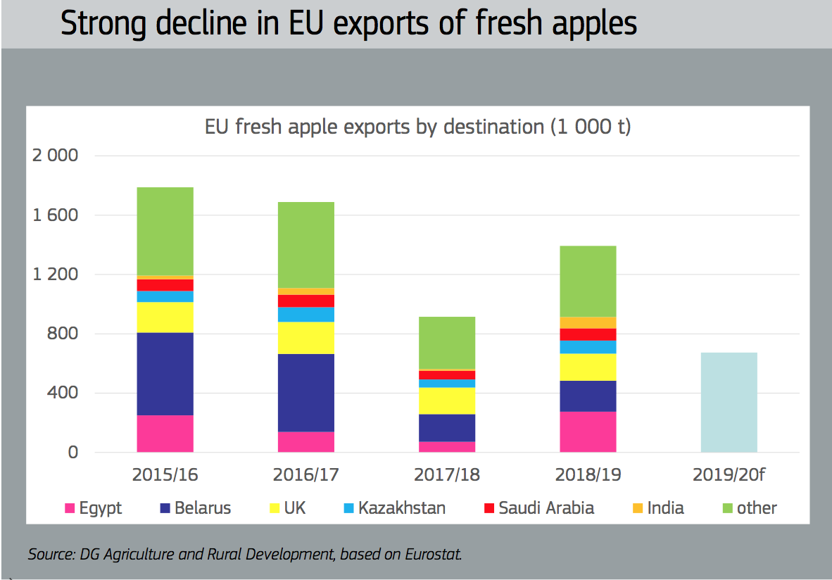 Mentre la produzione stimata di mele prodotte in Ue nell'attuale campagna è inferiore del 10% rispetto alla media degli ultimi cinque anni (10,8 milioni di tonnellate), cresce la domanda (+9%), grazie alle maggiori vendite al dettaglio guidate dall'aumento dei consumi domestici.