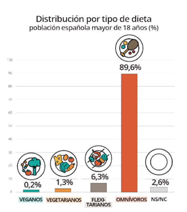 Anche in Spagna l'ondata di persone che stanno riducendo costantemente il numero di proteine animali dalla loro alimentazione cresce di anno in anno, un po' come successo anche in Italia dove, stando alle ultime indagini, questo numero di attesta intorno ai 16 milioni di abitanti.