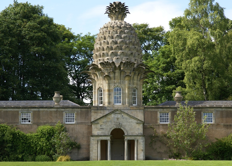 L’idea che fosse un simbolo di opulenza è evidente anche nell’architettura. L’esempio più noto è quello della decorazione a forma di ananas che spunta sulla sommità di una torretta diDunmore Park, una residenza costruita in Scozia attorno al 1760.