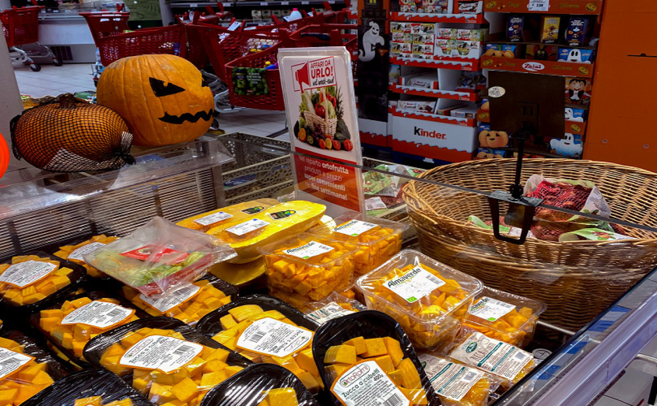 In questi giorni, a ridosso della festività di Halloween la domanda di zucca cresce e i display della distribuzione si riempiono delle multiformi tipologie di zucche, con grande attenzione anche per la zucca a pezzetti già pronta per la cottura. L’andamento climatico anomalo di quest’anno, pur determinando qualche problema agronomico per la produzione di zucca, non sta distogliendo i consumatori dall’autentica passione del momento.