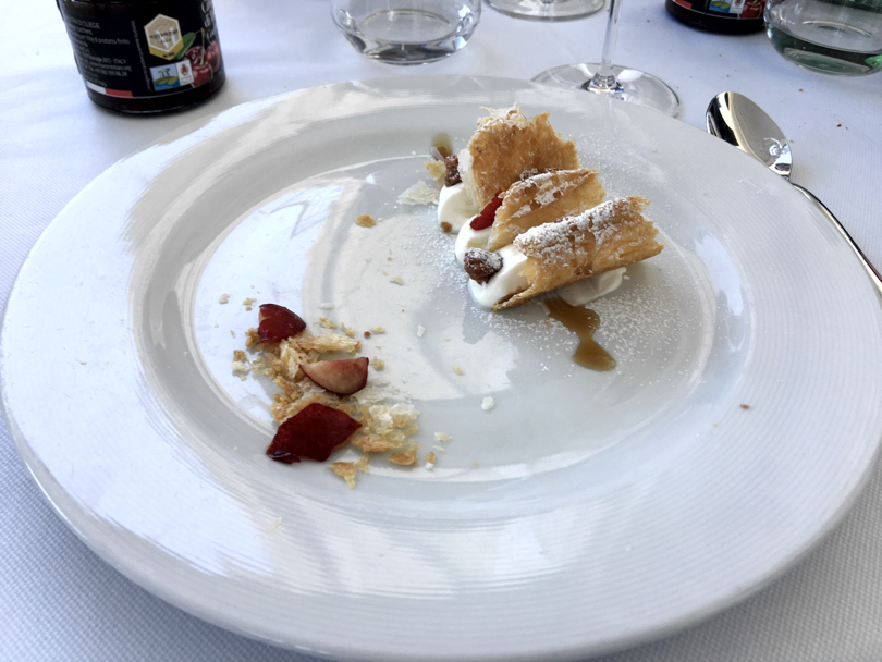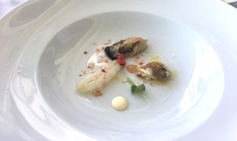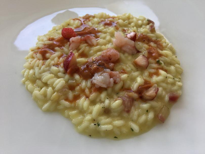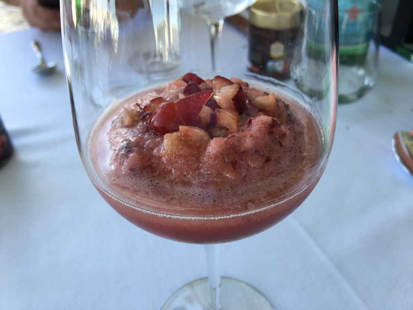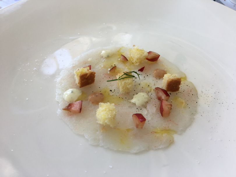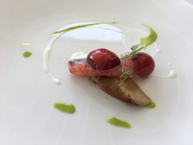 Ostriche, tartufo di mare e scampi con una granita di ciliegie e un battuto di gambero bianco, con pan brioche, dressing di erbe e ciliegie sono stati i primi due esempi dove la sapidità del pesce crudo ha trovato come suo contraltare la dolcezza delle ciliegie. Di grande fascino l'abbinamento delle ciliegie, questa volta saltate in padella, con Foie Gras, gamberi rossi, crema di mozzarella e crema di piselli.