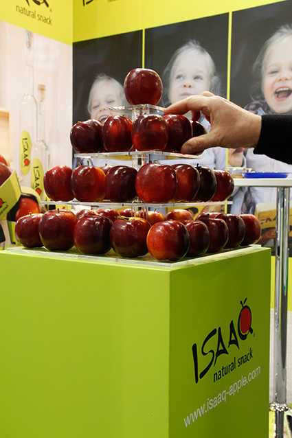 continua Braun. “Stiamo lavorando sulle vending machine ed su altri concetti per un consumo on-the-go, per chiunque. La mela è talmente pratica che puoi consumarla ovunque. Osserviamo i trend, e vogliamo rendere una mela “cool e sexy” tra la gente. Di aiuto ci sono i nostri social media e le attivitá di cross marketing con altri marchi, come le bici Ghost Bikes che presentano ISAAQ durante le loro gare di coppa del mondo e ad altri eventi”. Kiku, con la sua mela Isaaq, saranno presenti anche alla prossima edizione di Asia Fruit Logistica