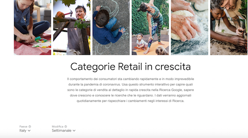 Si chiama “categorie retail in crescita” ed è il nuovo strumento di Google che mette in evidenza i prodotti maggiormente ricercati dai consumatori sul web. Al momento è attivo in Italia, Germania, Francia, Regno Unito, Olanda, Norvegia, Svezia, Giappone, Turchia, Brasile, Australia e Stati Uniti, ma è probabile che presto aumenterà il raggio di azione. Uno tool utile per le aziende che hanno trovato nell'e-commerce un canale di vendita interessante: lo strumento, se ben utilizzato, può supportare le strategie di marketing e comunicazione, permettendo la promozione mirata dei prodotti “che vanno”. E poiché i prodotti ortofrutticoli, soprattutto in tempo di lockdown, hanno trovato nel commercio elettronico una nuova linfa, è utile capire come fare per conoscere quelli maggiormente googolati.