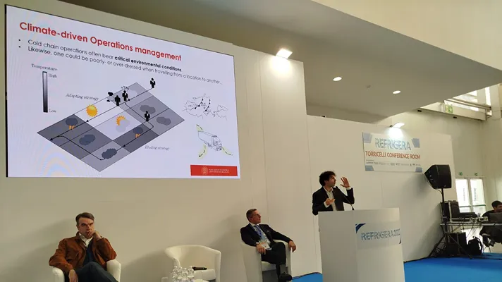 A sostegno di queste parole nel suo intervento ha proiettato una cartina dell'Italia dove nell'itinerario dei camion emergono le differenti temperature delle regioni attraversate. Si può partire dalle zone di raccolta dove si hanno temperature basse passare per aree miti e arrivare in territori con temperature elevate. Basti pensare al nord e sud Italia dove c'è una logistica quotidiana dedicata all'ortofrutta
