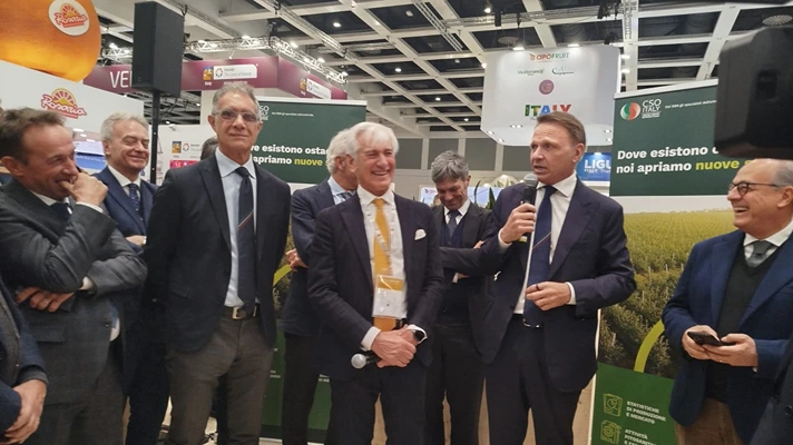 Queste le parole del ministro, intervenuto all’inaugurazione della Collettiva Italy (30 grandi aziende, mille metri quadri), promossa da Cso Italy in collaborazione con Fruitimprese. Di fronte a lui una platea di grandi nomi dell’ortofrutta italiana e presenze istituzionali, a partire da Edmondo Cirielli, viceministro degli Affari Esteri e della Cooperazione Internazionale, dal presidente dell’Ice Matteo Zoppas e dall’ambasciatore d’Italia a Berlino, Fabrizio Bucci, da assessori regionali all’agricoltura come Gianluca Gallo della Regione Calabria.
