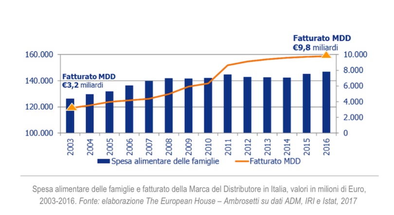 Per la prima volta in Italia, infatti, i prodotti MDD hanno superato quota 10 miliardi di ricavi (+206% rispetto ai 3,2 miliardi del 2003) raggiungendo una quota di mercato del 18,5% (+7,7% rispetto al 2003) e una proiezione sul 2017 intorno al 18,7%.
