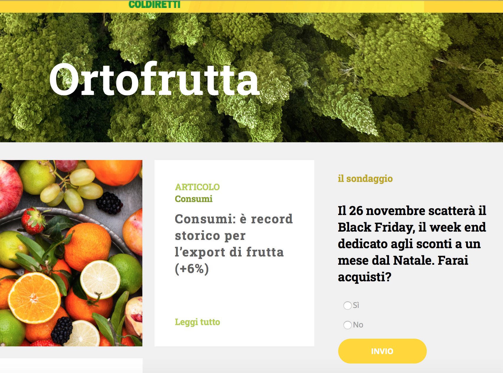 Tanto che Coldiretti, conscia del successo di questa iniziativa, ha aperto sul proprio sito un sondaggio con il quale chiede se il 26 novembre si faranno acquisti. E' ancora presto per conoscerne l'esito, ma si possono invece già scoprire le promozioni che coinvolgeranno il reparto ortofrutta.