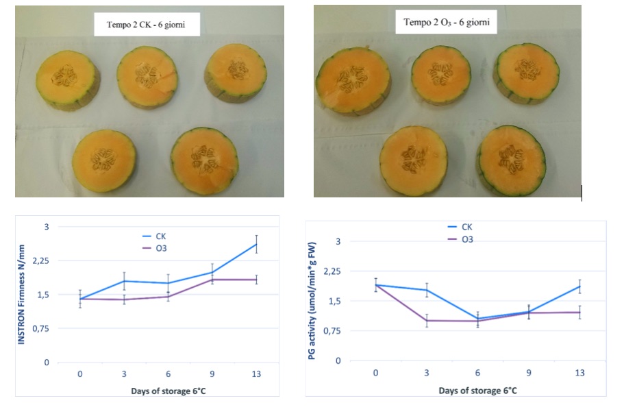 “Dai risultati si evince che l’ozono”- spiega il prof. Rinaldo Botondi, docente del Dipartimento per l’Innovazione nei Sistemi Biologici Agroalimentari e Forestali – “mostra un’ azione positiva sul controllo del rammollimento del frutto di melone durante la conservazione a 6 °C verificabile sia mediante la valutazione dei dati della consistenza sia attraverso lo studio delle cinetiche enzimatiche di PG, α– arabinopyranosidase, β – galactopyranosidase”.