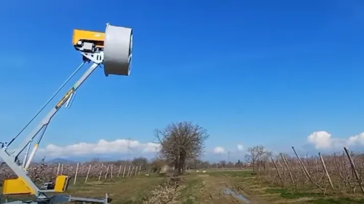 Neve, grandine, gelate, vento. In diversi regioni italiane la primavera è stata interrotta dal maltempo. Violento, molto violento per l'agricoltura come raccontano le cronache. Ci sono aziende che denunciano danni per centinaia di migliaia di euro. Insomma dopo il ciclone Harry, i cui effetti si sono sentiti sulle quotazioni ortofrutticole, un'altra tornata meteo negativa che piega il lavoro degli imprenditori che cercano, per quanto possibile, di correre ai ripari. Si vedono per esempio le grandi ventole, come nella foto sotto, per difendersi dalle gelate.