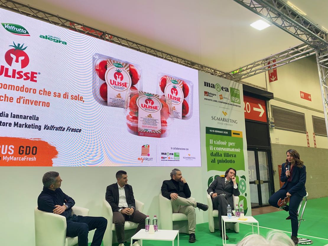 A Marca Valfrutta Fresco presenta una novità di nome Ulisse, un nuovo pomodoro tondo, dolce e sapido, che si colloca nella fascia premium di questo comparto. La domanda di Claudia Iannarella, direttore marketing, che ha chiesto se ci possa essere spazio per un’innovazione del genere nel reparto ortofrutta ha animato il dibattito.