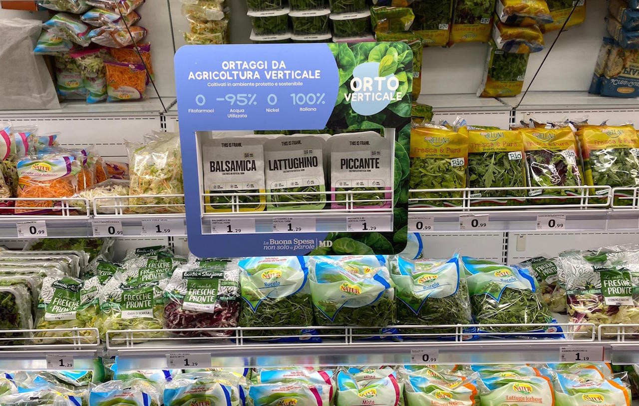 Le tre nuove insalate MD sono inoltre coltivate in vertical farm, un’agricoltura che consente di massimizzare l’uso dello spazio: se il metodo di coltivazione tradizionale, infatti, prevede l’utilizzo di ampi appezzamenti di terreno, l’agricoltura verticale utilizza strutture multi-piano come grattacieli o container, scaffali o pareti verticali.