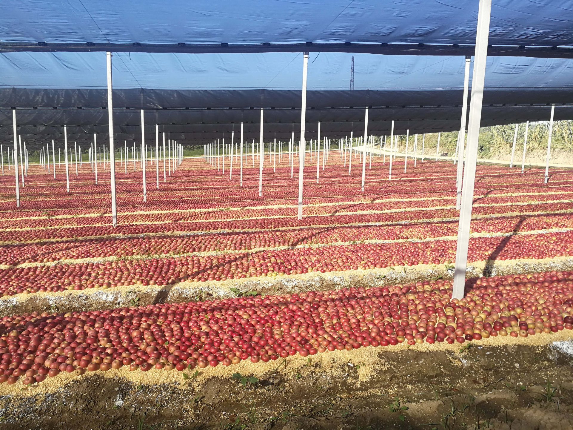 «Questa tipologia di mela, tipica del territorio campano, si staccava dall’albero a causa del picciolo molto corto quando non era ancora matura ed era troppo acida – ci racconta Serena Pittella, responsabile merketing della AOP Luce –. Nel tempo si è scoperto che lasciando arrossare i frutti al sole adagiati a terra, dopo che erano caduti dall’albero, acquisivano un grado Brix più alto e assumevano caratteristiche organolettiche particolari».